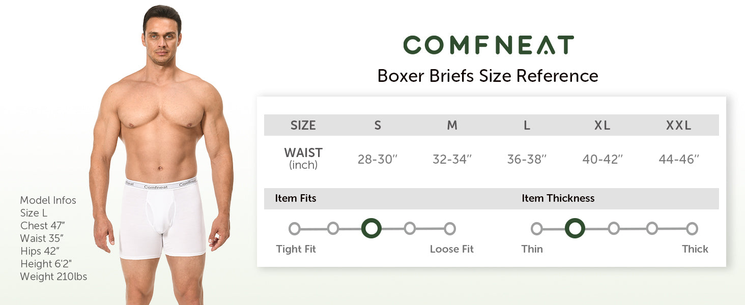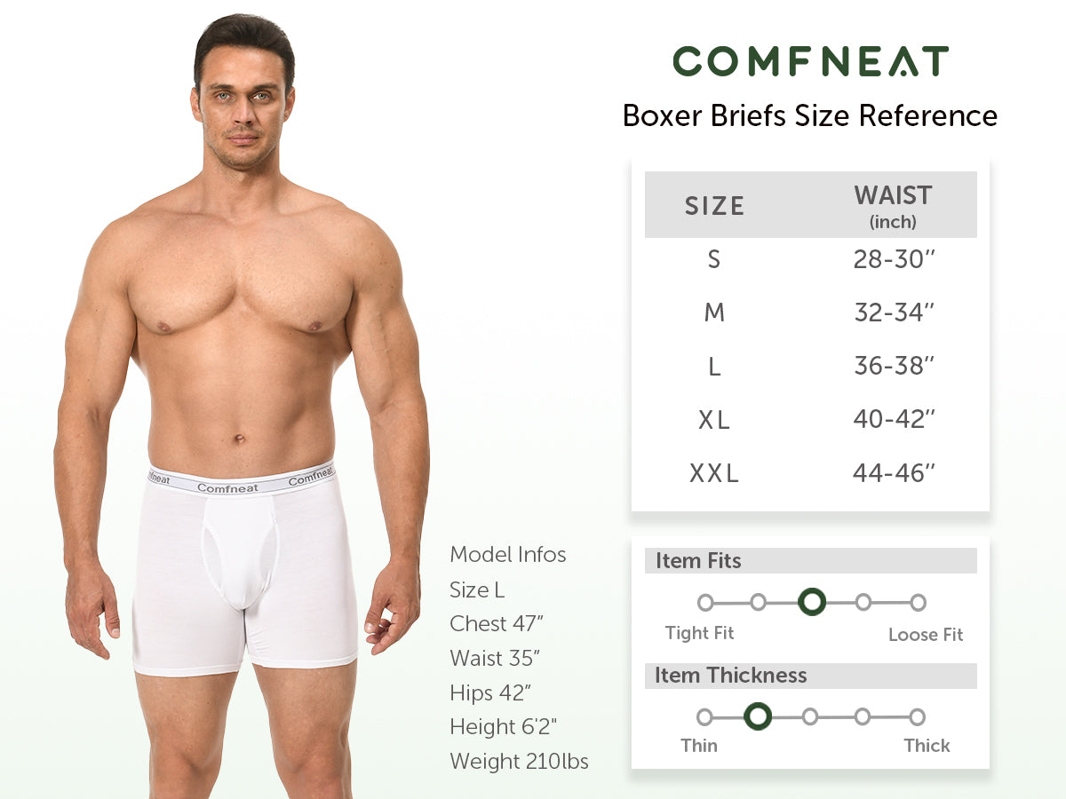Comfneat Men's 5-Pack Bamboo Viscose Boxer Briefs Cool Feeling Underwear with Fly