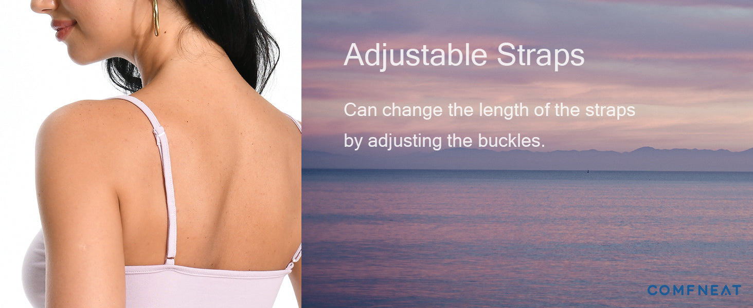 • Adjustable Strap : Spaghetti straps with concealed adjustable buckles for a customized fit.
