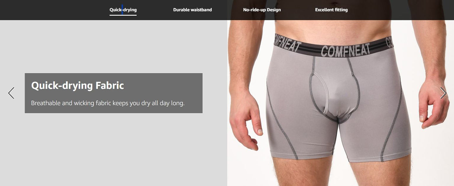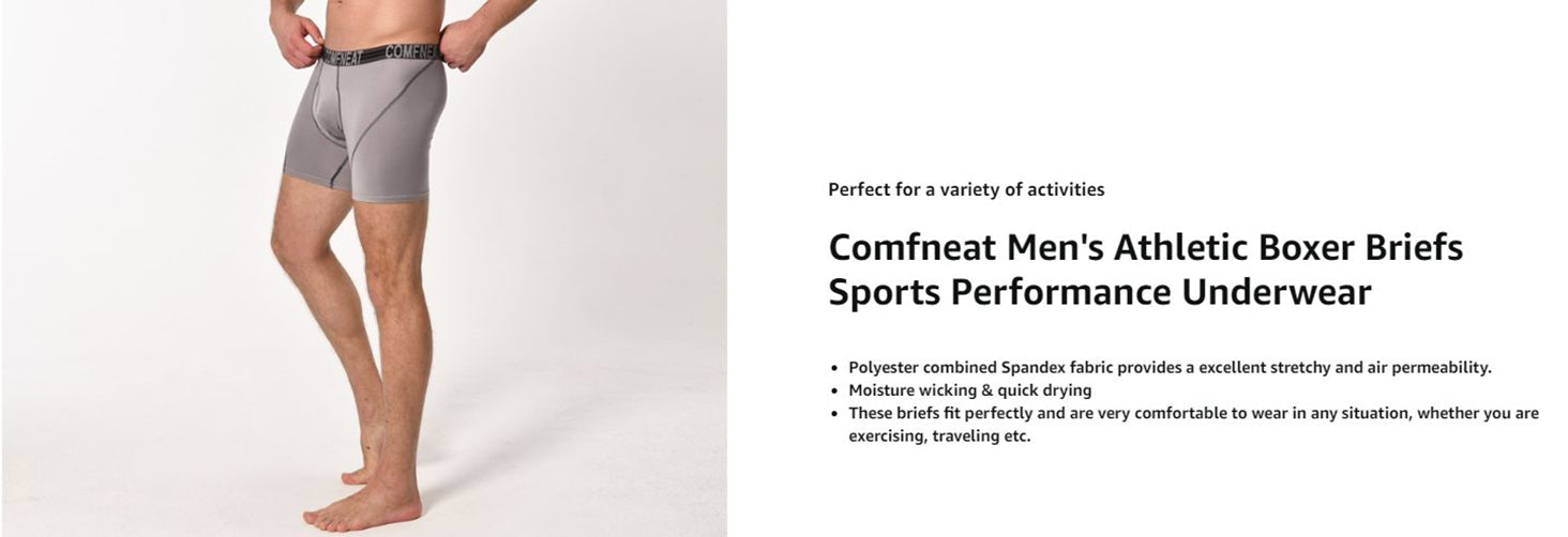 Comfneat Men's 4-Pack Athletic Boxer Briefs Sports Performance Underwear with Fly
