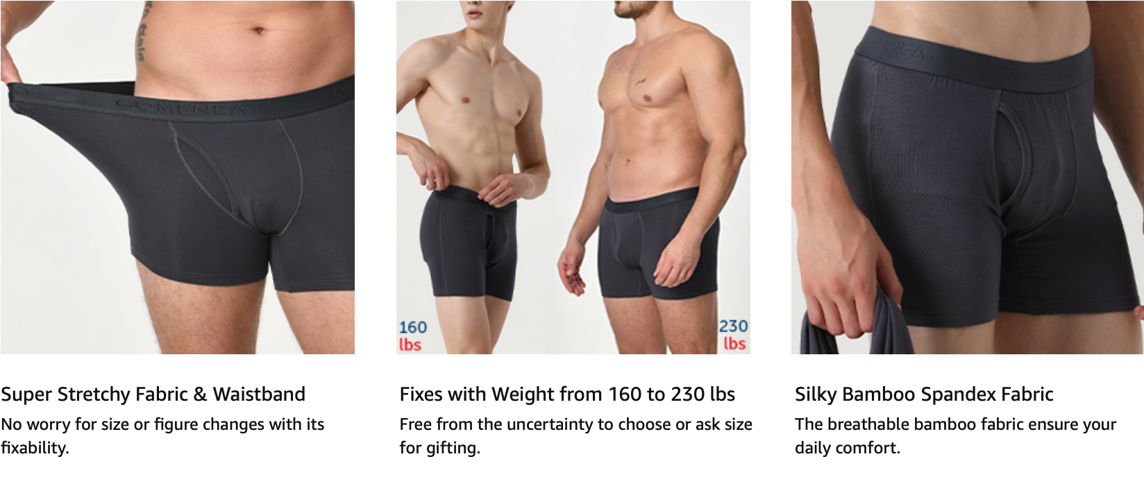 • When you're not sure of your size, or tired of the thousands of different sizes from various brands, you can try these boxer briefs. It fits for people from 165 to 230 lb/ 75 to 105kg.